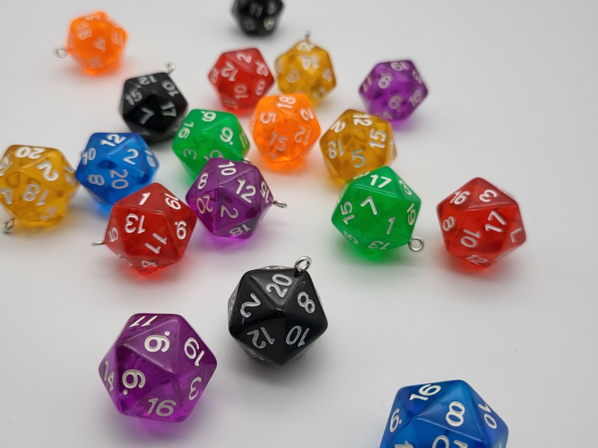 These handmade colorful non-toxic resin mixed with pigment dice earrings show the world your love for tabletop gaming.