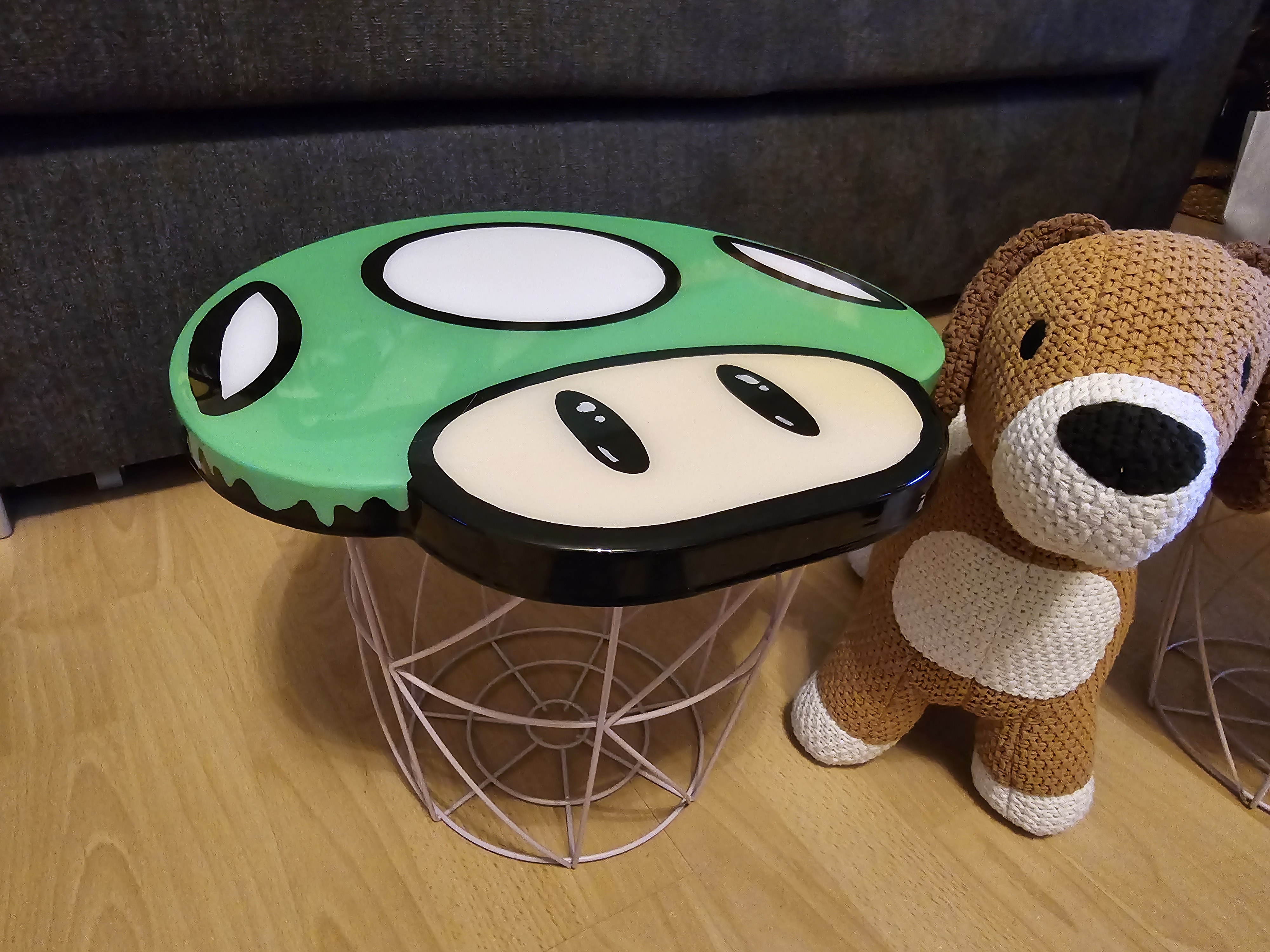 They are all one-of-a-kind, handmade tables made out of wood and epoxy.